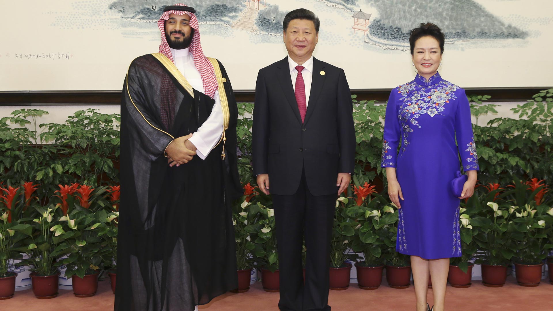 9月4日,国家主席习近平和夫人彭丽媛在杭州西子宾馆举行宴会,欢迎出席二十国集团领导人杭州峰会的外方代表团团长及所有嘉宾。这是习近平和彭丽媛迎候沙特阿拉伯王储继承人兼第二副首相、国防大臣穆罕默德。新华社记者丁林摄