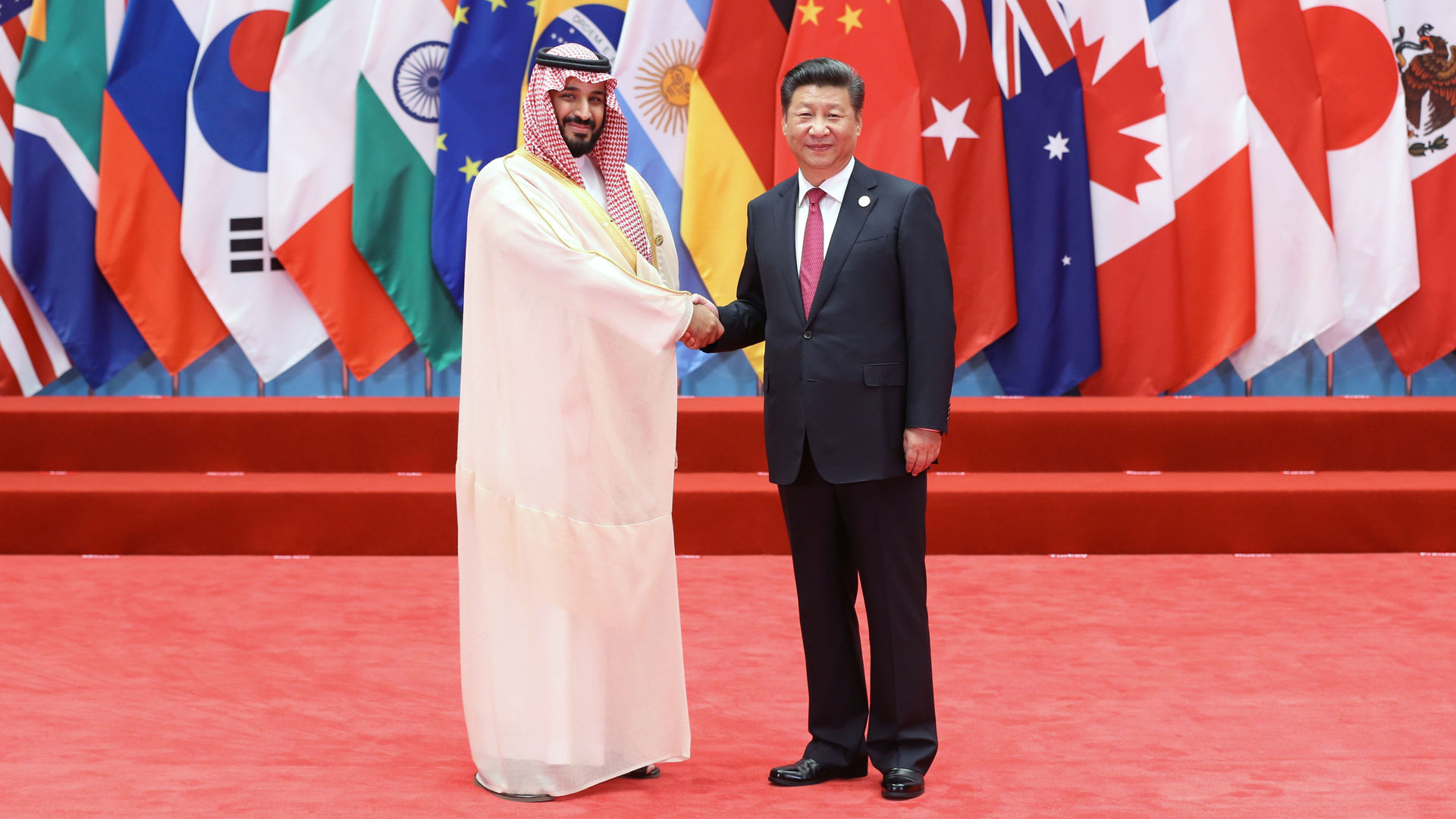 9月4日,二十国集团领导人第十一次峰会在杭州举行,中国国家主席习近平在国际博览中心迎接各成员和嘉宾国领导人、有关国际组织负责人。这是习近平与沙特阿拉伯王储继承人兼第二副首相、国防大臣穆罕默德握手。 新华社记者马占成摄