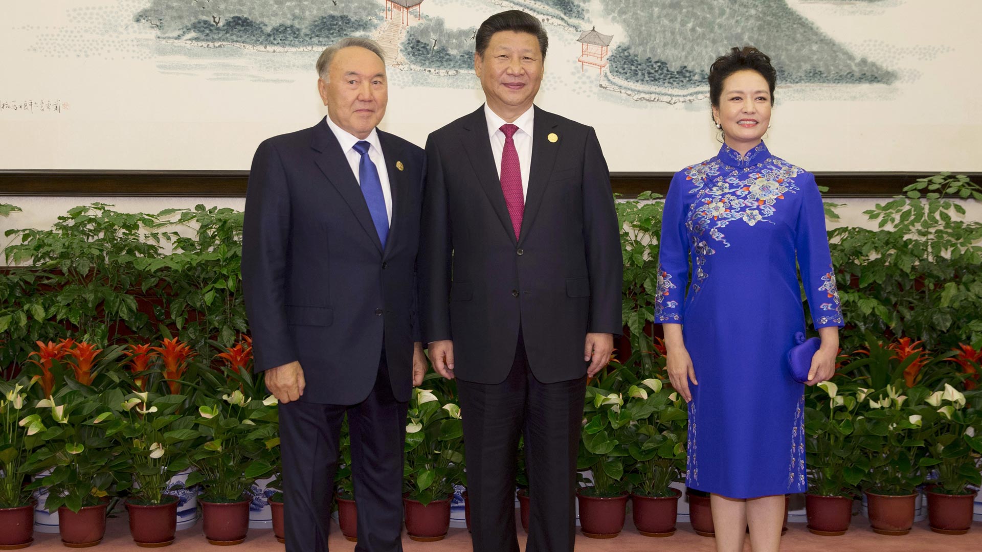 9月4日,国家主席习近平和夫人彭丽媛在杭州西子宾馆举行宴会,欢迎出席二十国集团领导人杭州峰会的外方代表团团长及所有嘉宾。这是习近平和彭丽媛迎候哈萨克斯坦总统纳扎尔巴耶夫。新华社记者丁林摄