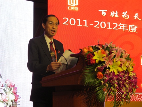 颁奖大会由中国房地产业协会副会长朱中一主持。刘志峰会长在会上致辞。他首先代表中国房地产业协会、住房和城乡建设部住宅产业化促进中心向获奖企业及获奖项目参建单位表示热烈的祝贺!向关心、支持和指导“广厦奖”评选工作的各级房地产行业主管部门及在组织企业申报、初审和推荐中付出辛勤劳动的各省、自治区、直辖市房地产业协会(开发协会)、住宅产业化机构表示衷心的感谢!他说,今天我们在这里举行2011―2012年度“广厦奖”颁奖大会,为73个荣获“广厦奖”的项目颁奖,这是我国房地产行业的盛事,是向广大民众的一次汇报,也是全面贯彻实践科学发展观、提升我国住宅与房地产行业整体水平,促进房地产市场平稳健康发展、推进我国住宅产业现代化进程的具体体现。获得“广厦奖”是开发企业的崇高荣誉,是对企业综合实力和社会责任的充分肯定。