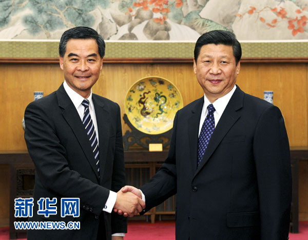 12月20日,中共中央总书记、国家副主席习近平在北京中南海会见来京述职的香港特别行政区行政长官梁振英。 新华社记者 饶爱民 摄
