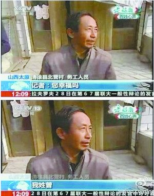 释义:清徐县北营村一位务工人员面对记者的提问,先推脱了一番:“我是外地打工的,不要问我。”记者却未放弃,继续追问道:“您幸福吗?”他用眼神上下打量了一番提问的记者,然后答道:“我姓曾。”这段对话让电视机前的观众忍俊不禁,“神一样的回复”引发大众新一波的恶搞热潮。