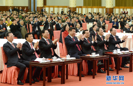 1月29日,中共中央、国务院在北京人民大会堂举行2014年春节团拜会。党和国家领导人习近平、李克强、张德江、俞正声、刘云山、王岐山、张高丽等同首都各界人士欢聚一堂,共迎新春。新华社记者 马占成 摄