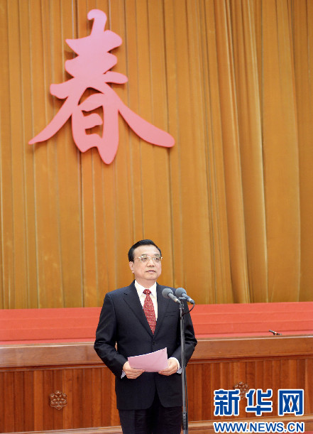 1月29日,中共中央、国务院在北京人民大会堂举行2014年春节团拜会。这是中共中央政治局常委、国务院总理李克强在团拜会上讲话。新华社记者 李涛 摄