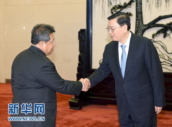 双方还就地区形势交换了看法。张德江指出,中方坚持走和平发展道路是真诚的、坚定的,将继续秉承睦邻、安邻、富邻的周边外交方针,积极推动落实共同、综合、合作、可持续的亚洲安全观,为维护地区和平、稳定、发展作出应有贡献。
