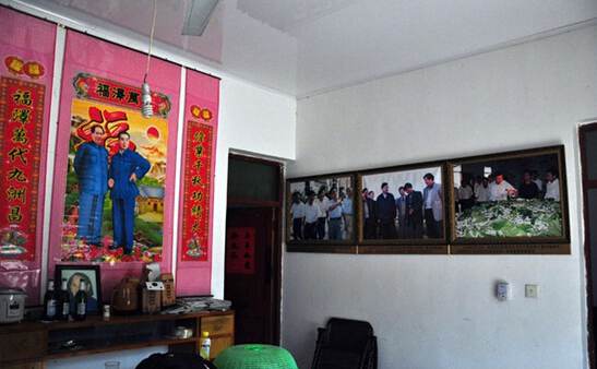 下姜村是张德江、习近平、赵洪祝三任省委书记的联系点。原村支书姜银祥家的客厅里摆放着三任书记来下姜村考察时的照片。(陈芳/摄)