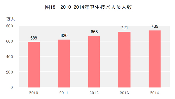 卫生和社会服务事业不断改善。年末全国共有医疗卫生机构982443个,其中医院25865个,乡镇卫生院36899个,社区卫生服务中心(站)34264个,诊所(卫生所、医务室)188415个,村卫生室646044个,疾病预防控制中心3491个,卫生监督所(中心)2975个。卫生技术人员739万人,其中执业医师和执业助理医师282万人,注册护士292万人。医疗卫生机构床位652万张,其中医院484万张,乡镇卫生院117万张。