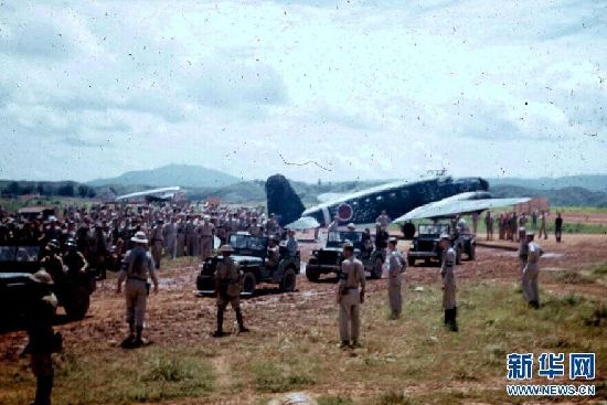 这是1945年8月21日,日本投降代表下机后乘坐插有白旗的降车,绕场一周示众。“八年烽火起卢沟,一纸降书落芷江”。在中国人民抗日战争胜利70周年即将到来之际,4月17日,位于湖南芷江侗族自治县的中国人民抗日战争胜利受降纪念馆首次对外公布日本在芷江投降的多张彩色照片,这些照片由当年美国飞虎队员约瑟夫·德拍摄。这些照片充满了历史感,主要场景有日本投降代表降机落地后,乘坐插有白旗的降车驶往指定地点的过程、美国大兵展示日本投降的外文报纸,以及芷江全城欢庆抗战胜利的场景,反映了中国人民迎接、欢庆、见证胜利的历史。新华社发