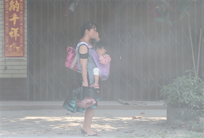 受粉尘影响最严重的当属公馆镇人口最稠密的镇中心,沿镇主干道步行一公里,路上的扬尘几乎让人无法呼吸,街道两边门窗紧闭。粉尘来源主要是包围着镇子的几个碎石场,加上拉碎石的大型运输车的遗撒和扬尘。记者走进邻近的红星幼儿园,老师告诉记者,孩子们几乎不敢户外活动。