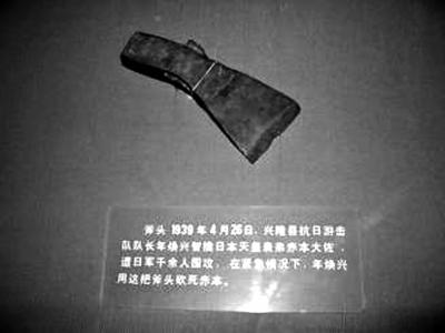 八路军战士处决赤本时使用的斧头。图片来源:河北遵化党史网