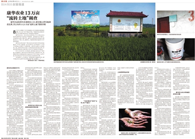 2014年9月15日,新京报发表文章《康华农业13万亩“流转土地”调查》,记者实地调查发现,康华农业公布的13.25万亩“流转土地”数据存在疑问。