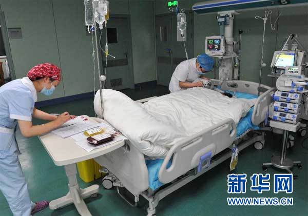 5月15日,在咸阳市陕西省核工业215医院,车祸伤者在接受救治。记者从咸阳市陕西省核工业215医院获悉,在这个医院救治的两名女性伤者因抢救无效死亡。淳化县境内发生的大巴车坠崖事故死亡人数已上升至35人。当日15时27分左右,西安相伴商贸有限公司一辆大巴车在淳化县境内发生坠崖事故。车上共有46人,其中包括两名司乘人员。 新华社记者丁海涛 摄