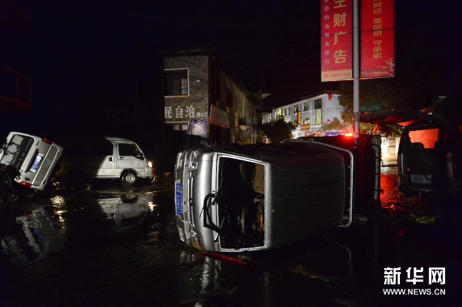 5月19日,在石城县横江镇,被洪水冲翻的汽车横在路边。 5月18日晚间开始,一轮强降雨袭击了江西赣南多个县区,其中石城县24小时降水达到152毫米。在受灾较严重的横江镇,洪水虽已退去,但镇上一片狼藉,不少居民前往亲朋家或县城宾馆居住。据统计,截至19日晚发稿时,强降雨致使石城县11140名群众转移,倒塌房屋111间,直接经济损失达5720万元。根据气象部门预计,未来两天石城县还可能出现大到暴雨。新华社记者周密摄