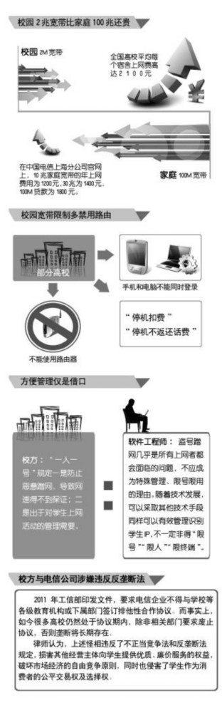 原标题:校园两兆宽带价超家庭百兆 校方电信联手涉嫌垄断