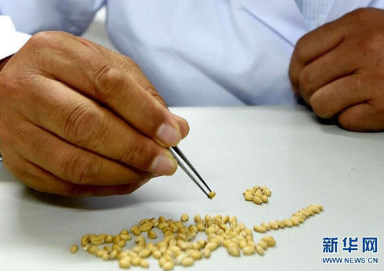 透过滑落在鼻尖的眼镜,茹振钢紧皱着眉头用镊子认真挑选种子。