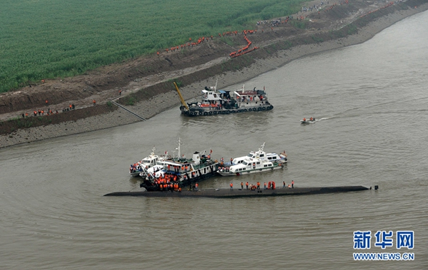6月2日,空中拍摄的长江客船翻沉搜救现场。新华社发(叶海涛 摄)