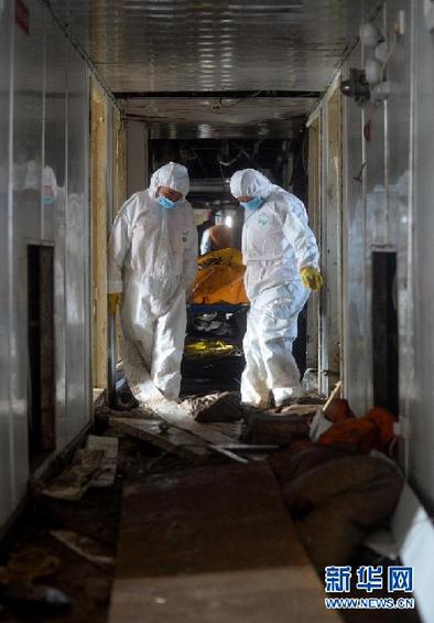 每当发现新的遇难者遗体,都先由防疫人员对遗体喷洒消毒药水。然后消防战士用电锯和液压钳移除遗体搬运的障碍,再将遗体装入双层黄色转运袋,按照6人一组抬担架的方式搬运遗体。这一过程每个细节、每个动作大家都小心翼翼,力求不因转运造成任何遗体再受损伤。