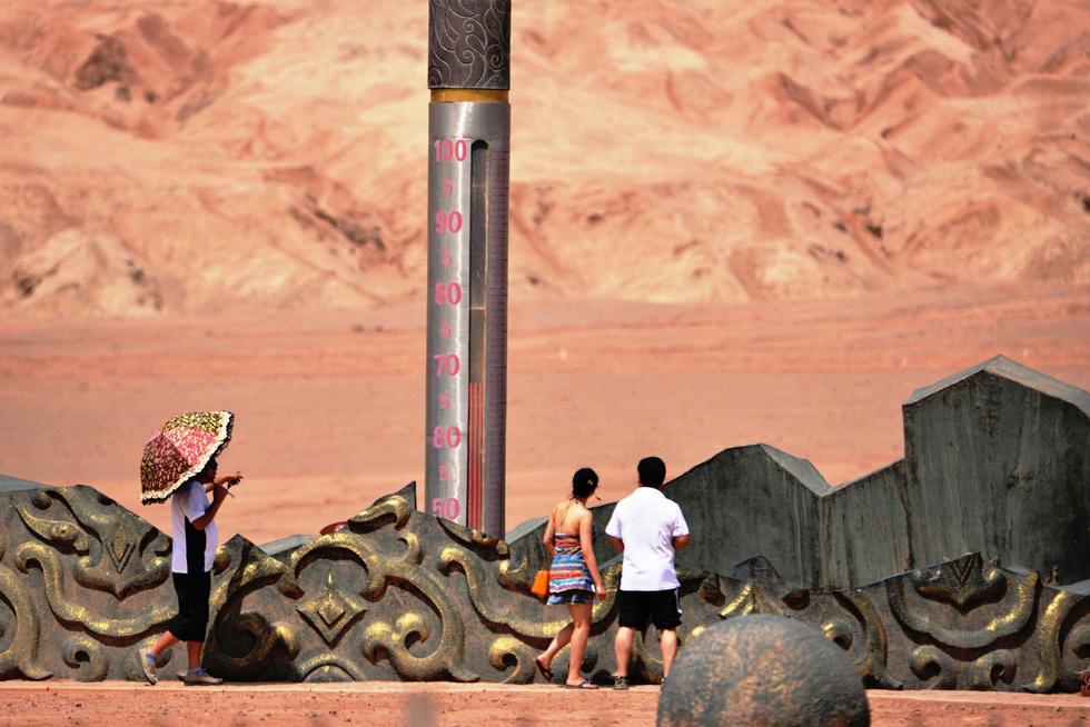 6月14日,新疆吐鲁番,当天,有“火洲”之称的新疆吐鲁番最高气温达到41摄氏度,距离吐鲁番市区40多公里的火焰山风景区高温时段的地表温度高达68摄氏度。
