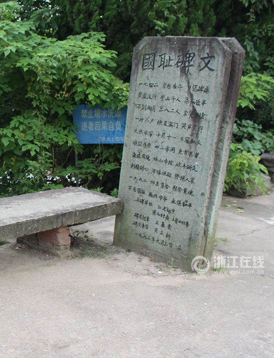 立在义乌塔下洲村的国耻碑文,记述了当年发生细菌传染惨案的大致经过