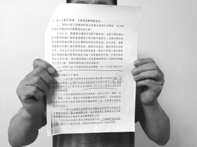 崔怀彬手里拿着区政府决定收回土地开发权的会议纪要。京华时报记者 常鑫 摄