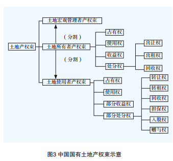 土地产权是由层次不同的多种权能构成,形成具有多层次、多权能的“土地产权约束”。对于所有权为国有的城市土地而言,其产权约束如图3所示(周诚,2003)。