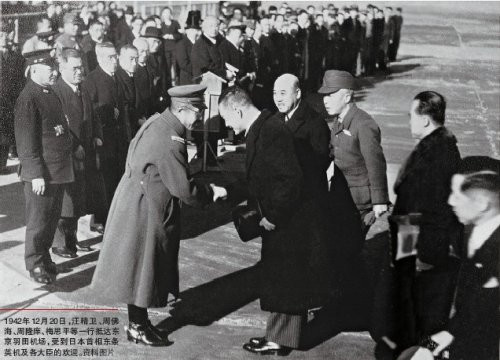 汪精卫及梅思平等人抵达东京羽田机场。(资料图片)