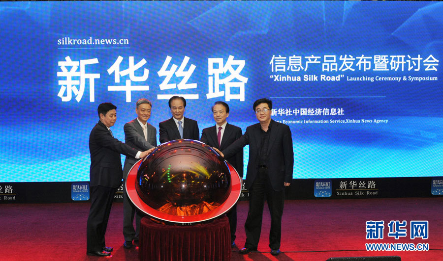 7月16日,新华通讯社在北京正式发布“新华丝路”信息产品,通过提供高效便捷、实时实用的经济信息服务,为“一带一路”沿线各国政府和企业搭建商品贸易和投资服务平台。产品由新华社所属的中国经济信息社主持运营,主要包括数据库、征信服务、信息咨询和智库服务、交易撮合等。新华社社长蔡名照(中),总编辑何平(右二)等共同启动“新华丝路”信息产品上线。新华社记者 温桂旭 摄