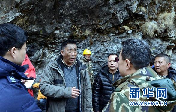 4月27日,西藏聂拉木县县委书记王平在地震现场指挥抢通道路。 新华社记者 觉果 摄