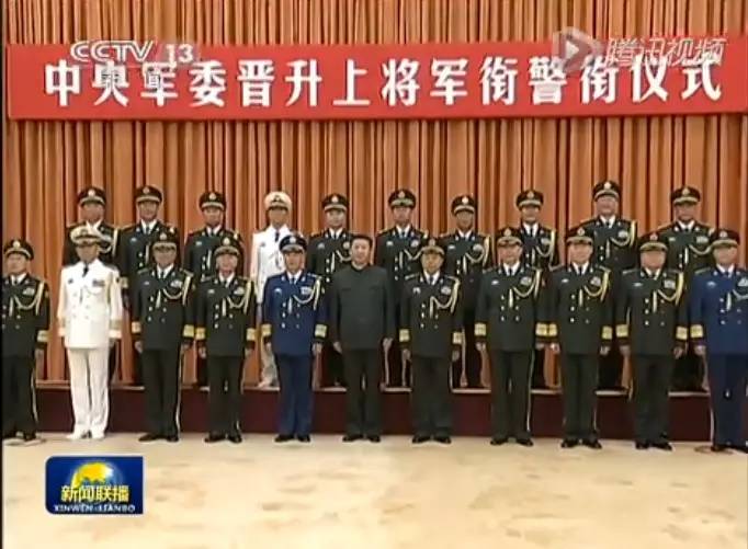 晋衔仪式在嘹亮的军歌声中结束。之后,习近平等领导同志同晋升上将军衔警衔的军官警官合影。