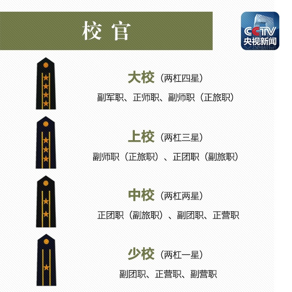 除此之外,军衔中的讲究还有很多。文职干部的军衔有什么不同?肩章底版颜色又有什么区别?戳图,教你一眼识别军衔等级。