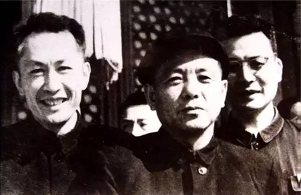 1966 年10 月1 日,彭桓武(中)与 朱光亚(左)、邓稼先(右)在天安门城楼。(网络图)