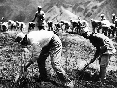 太行军区部队指战员在一起开荒种地