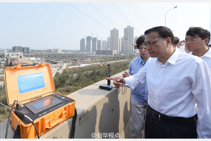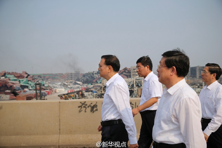新华网北京8月16日电 据新华社“新华视点”微博报道,李克强总理16日下午在天津“8·12”瑞海公司危险品仓库特别重大火灾爆炸事故现场。