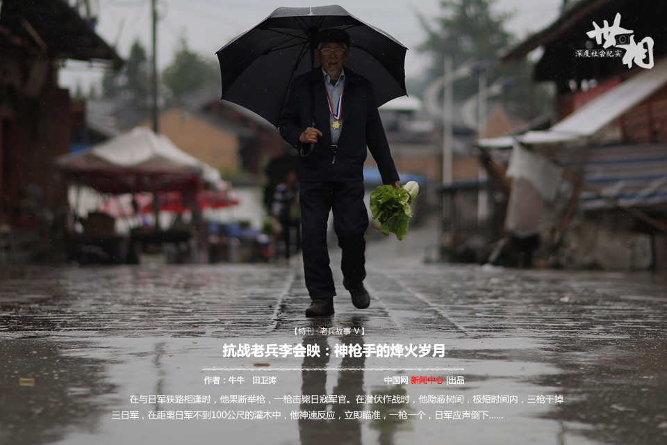 若你在大街上碰见他,也许这位耄耋老人只是与你擦肩而过的路人之一,若你坐下来,倾听他亲历的故事,你能感受到;历史,如翻滚的巨浪扑面而来;那刺鼻的硝烟,擦肩飞过的子弹,血染的土壤……,他依然可以清晰的背出枪法口诀:“看见目标,将枪举起,枪面要正,左前臂垂直,右手紧握枪把,闭左眼开右眼,瞄准,停止呼吸,击发!”他语气平静,就像是在讲述一段别人的历史。其中的惊险和惨烈之殤,似乎全都烟消云散。只有看到他身上的陈年疤痕,胸腔的奖章,才能真切感受到历史的重量和真实。