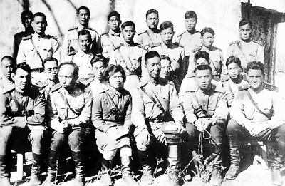 1943年,抗联部分将士转入苏联境内,周保中(前排右三)与抗联教导旅部分干部合影。