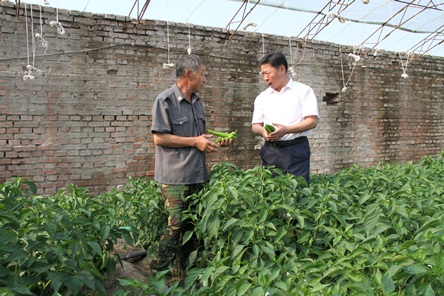 图为张宝才(右一)到架其村菜农家参与劳动。