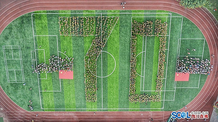 四川在线消息 (四川日报记者 何海洋 摄)9月1日,在成都市草堂小学西区分校的开学仪式上,学生和家长在学校的操场上摆出70数字的造型,庆祝中国人民抗日战争暨世界反法西斯战争胜利70周年,迎接新学期的到来。