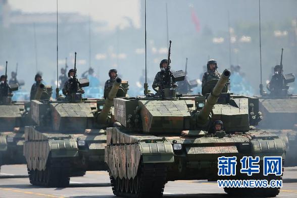 这是坦克方队通过天安门广场。 新华社记者 才扬 摄