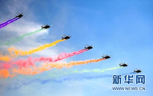 这是直升机梯队接受检阅。 新华社记者 林宏 摄