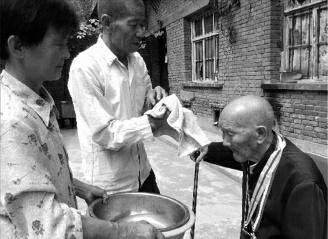 孩子们把老人当亲爷爷村民用榜样来教育子女