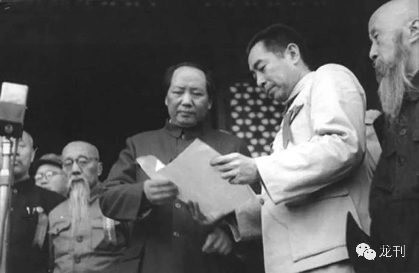 一九四九年十月一日,毛泽东,周恩来在开国大典上。