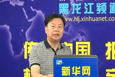 黑龙江省望奎县委书记顾百文在访谈现场。新华网黑龙江频道 刘洋摄