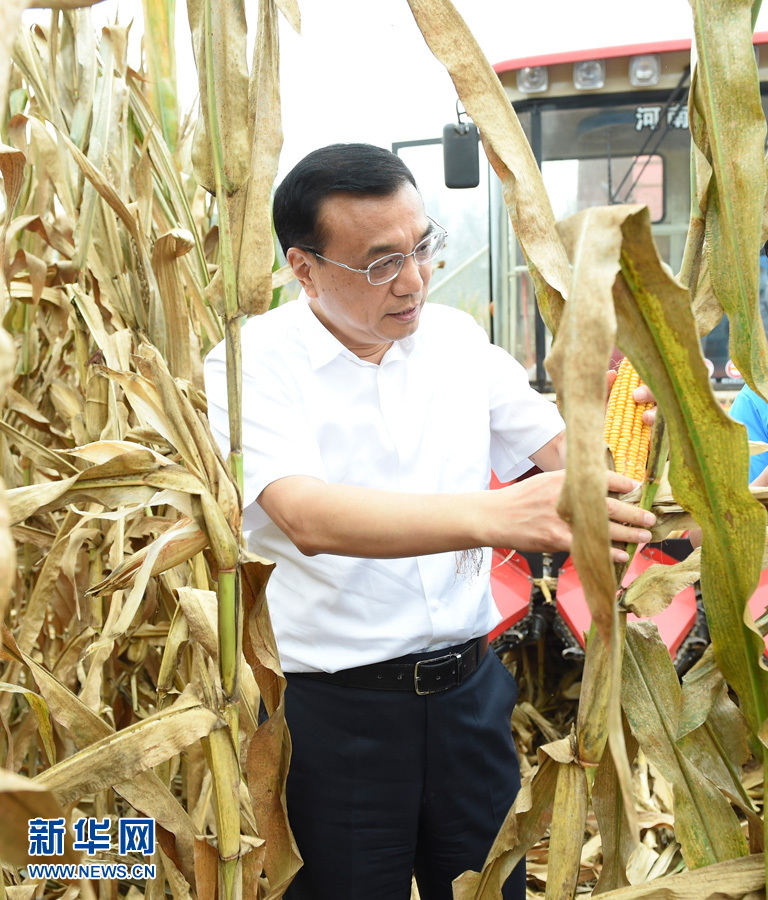 9月23日至25日,中共中央政治局常委、国务院总理李克强在河南考察。这是9月24日,李克强到长葛高标准农田察看玉米收成。新华社记者谢环驰摄