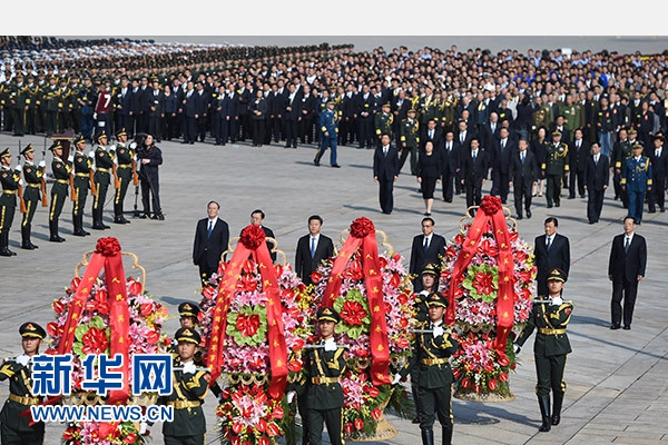 中央党政军群有关部门和北京市主要负责同志,各民主党派中央、全国工商联负责人和无党派人士代表,首都各界群众代表等参加了敬献花篮仪式。