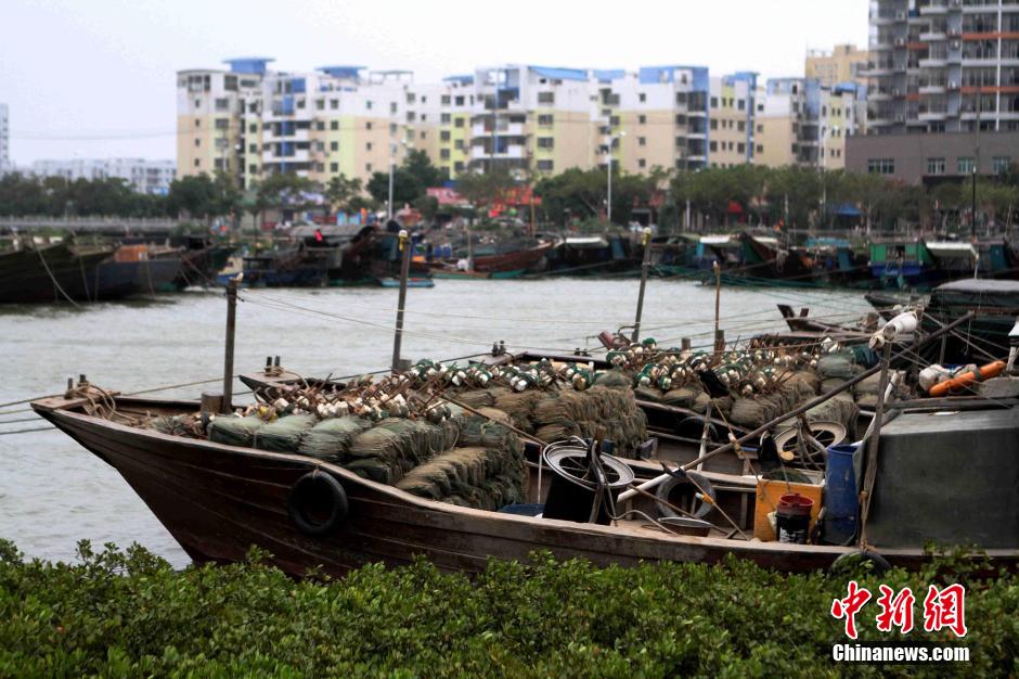 10月4日,广西沿海在海上作业的船只已经回港避风。受台风"彩虹"影响,4日夜间至5日白天,预计广西沿海将出现一次风暴潮过程,由于恰遇天文大潮期,5日上午将出现接近或达到警戒潮位的高潮位。中新社记者 凌福龙 摄