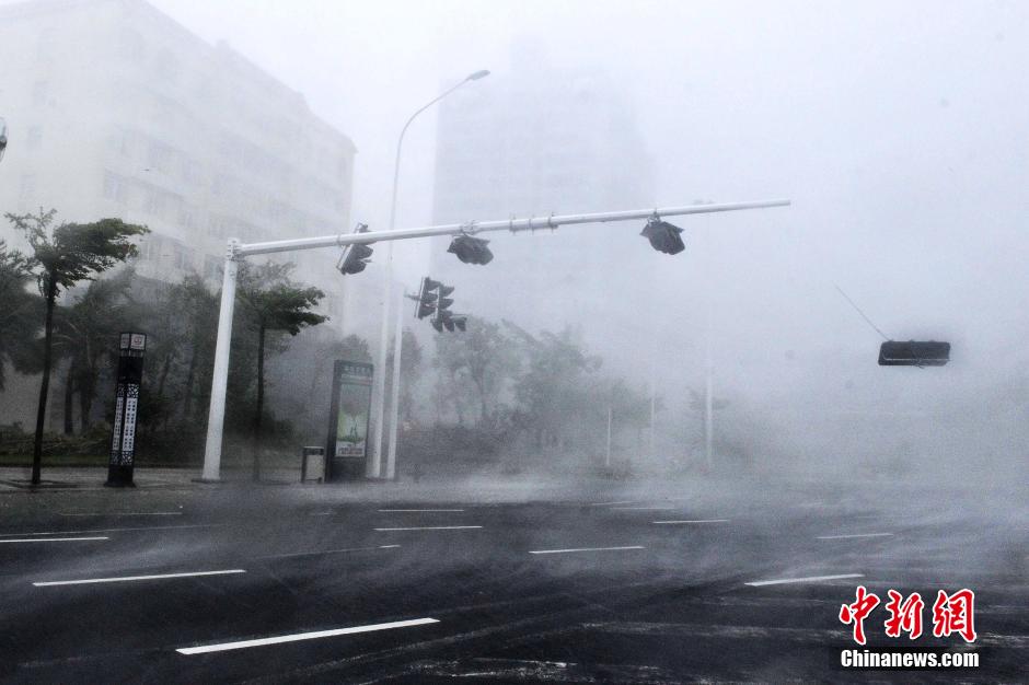 10月4日14时10分,强台风“彩虹”在广东湛江市坡头区沿海登陆。狂风暴雨导致湛江市区许多树木被拦腰折断,全城交通近乎瘫痪,大部分住宅小区、办公楼水电供应中断。 中新社记者 陈骥旻 摄