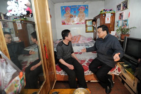 2013年2月3日,李克强在内蒙古包头北梁棚户区居民高俊平家中。