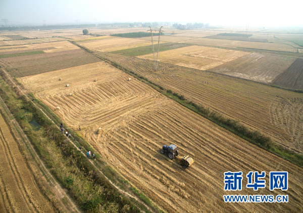 湖北省荆州市的一处农田在开展综合利用秸秆收储作业(10月22日摄)。 新华社记者 程敏 摄