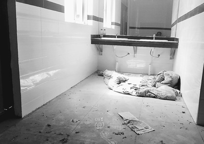 在盐湖区涑水街,笔者数了一下,这条长约5公里的路段有6个公厕。在一个窗户破碎的卫生间,笔者进去后发现,崭新的设施蒙上一层厚厚的灰尘,成了流浪汉的栖息地(见图)。但公厕的房前屋后到处是大小便。在这里摆摊的师傅说,这个路口每天有100多辆出租车等候雇主,虽然身旁就有一个公厕但不能用,只好随地大小便。