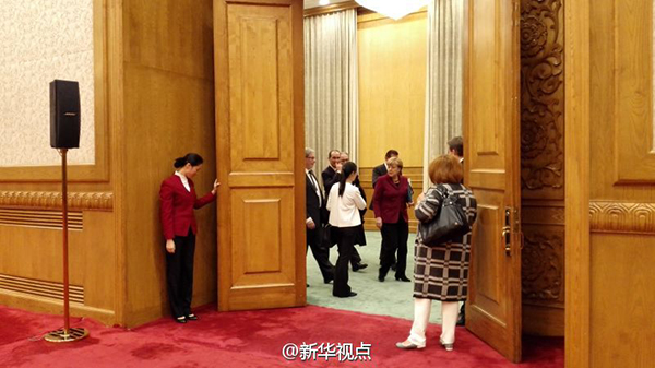 29日11时09分,人民大会堂东大厅南小厅的大门终于打开,李克强与默克尔走出会场,中德总理小范围会谈由预定的30分钟延长至70分钟。李克强总理此前曾与默克尔5次会晤,3次通话。此次默克尔访华两位老友重逢,从欢迎仪式开始就一路热络交流。(新华社“新华视点”微博报道)